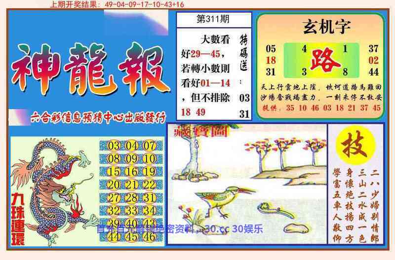 309期:【绝杀三肖】【狗龙猴】开:鼠06中