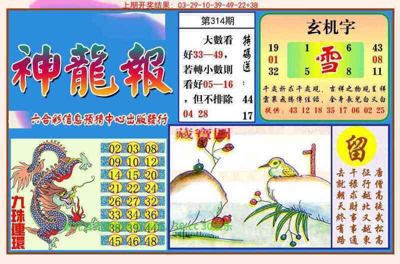 313期:六肖爆庄〖鼠鸡虎蛇马〗开:龙38中